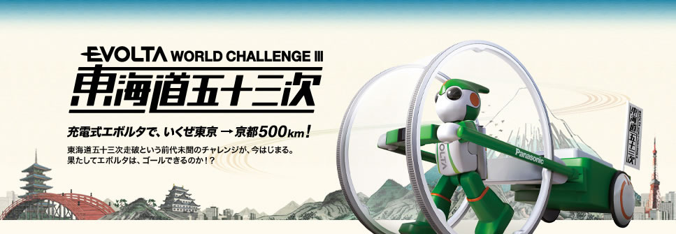 EVOLTA”東海道五十三次”グランドキャニオンクライムや、ル・マン24時間走破など、様々なチャレンジを続けるロボット「エボルタ君」。今回のチャレンジは、おなじみパナソニックの充電式EVOLTA単3電池12本のみをエネルギーに東京-京都間の500km「東海道五十三次」を旅する!毎回チャレンジ自体はめちゃくちゃすごいのに、あまり話題にならなくて残念。来年はどんな事をするんだろう??