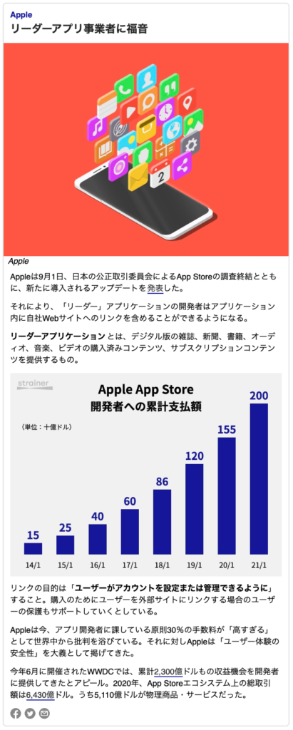 Strainerを使っていて「便利だなぁ」と思うサービスがこちらの毎朝届くニュースレター。